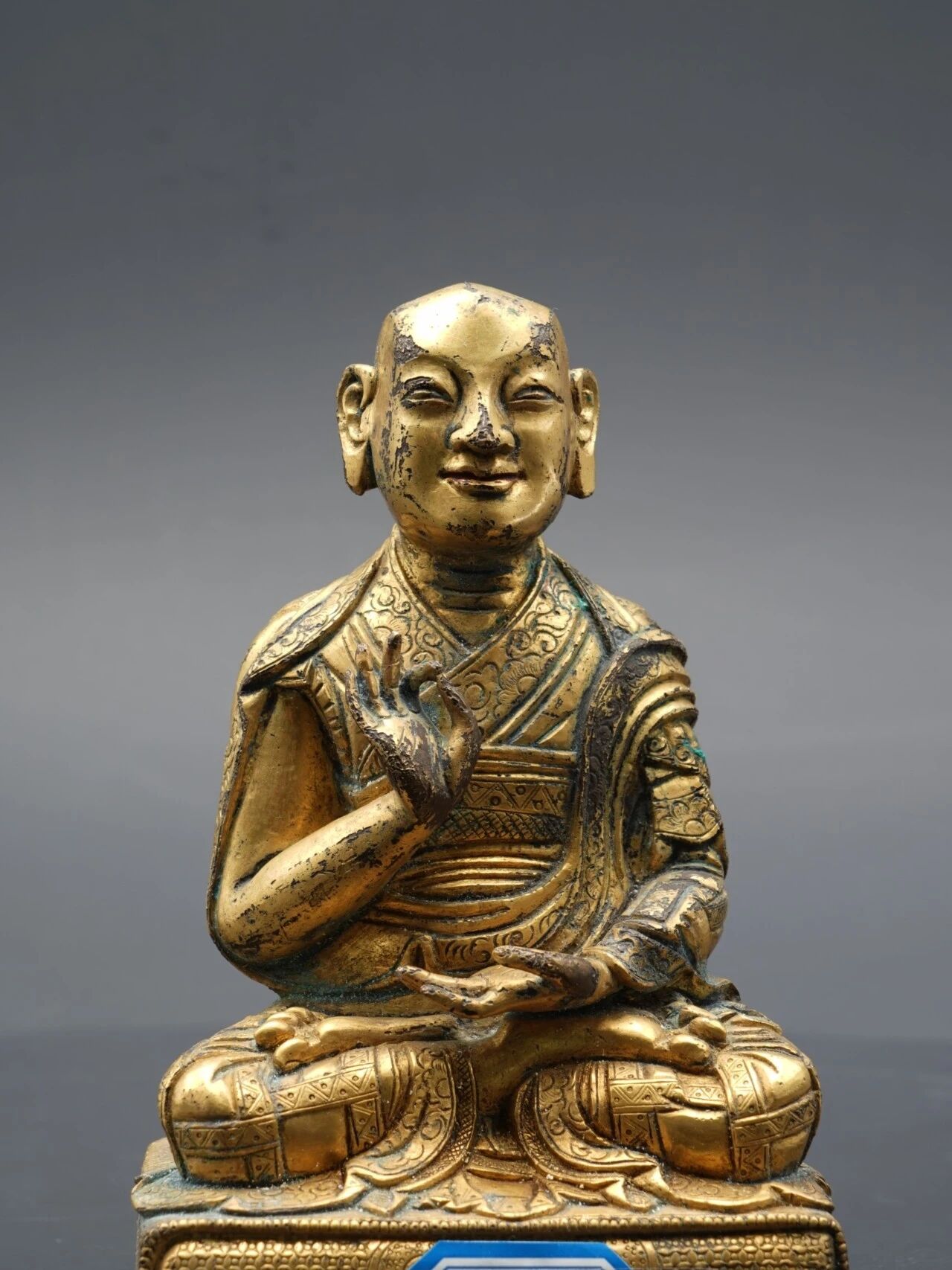 明镏金铜罗汉造像