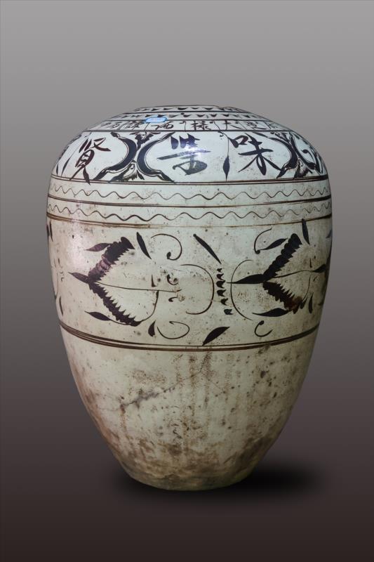 明白釉黑花陶酒缸